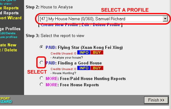 • Step 3: Ignore this selection for Good House Report as you do not know what is your main door direction.